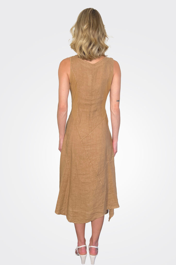 Inizio’s Linen Dress flaunts a great style from Italian linen dressmaker, Inizio. Asym detail across bodice