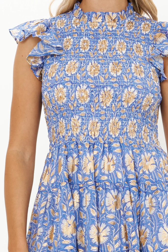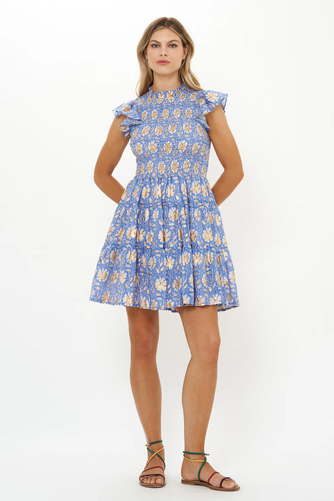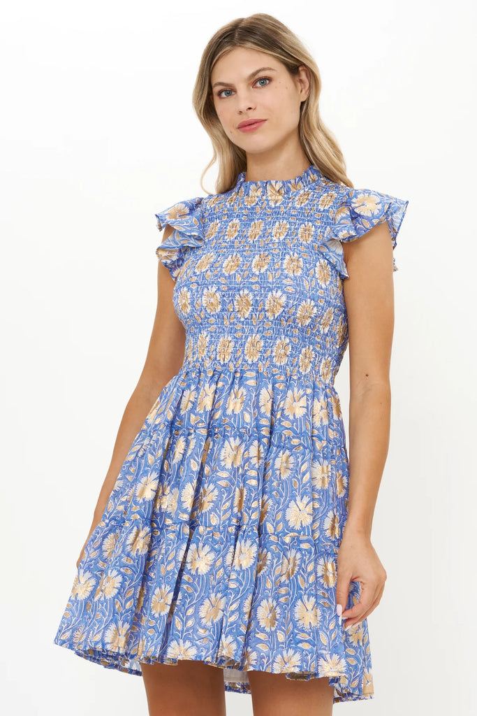 Smocked Flirty Short Dress - Mughal Blue