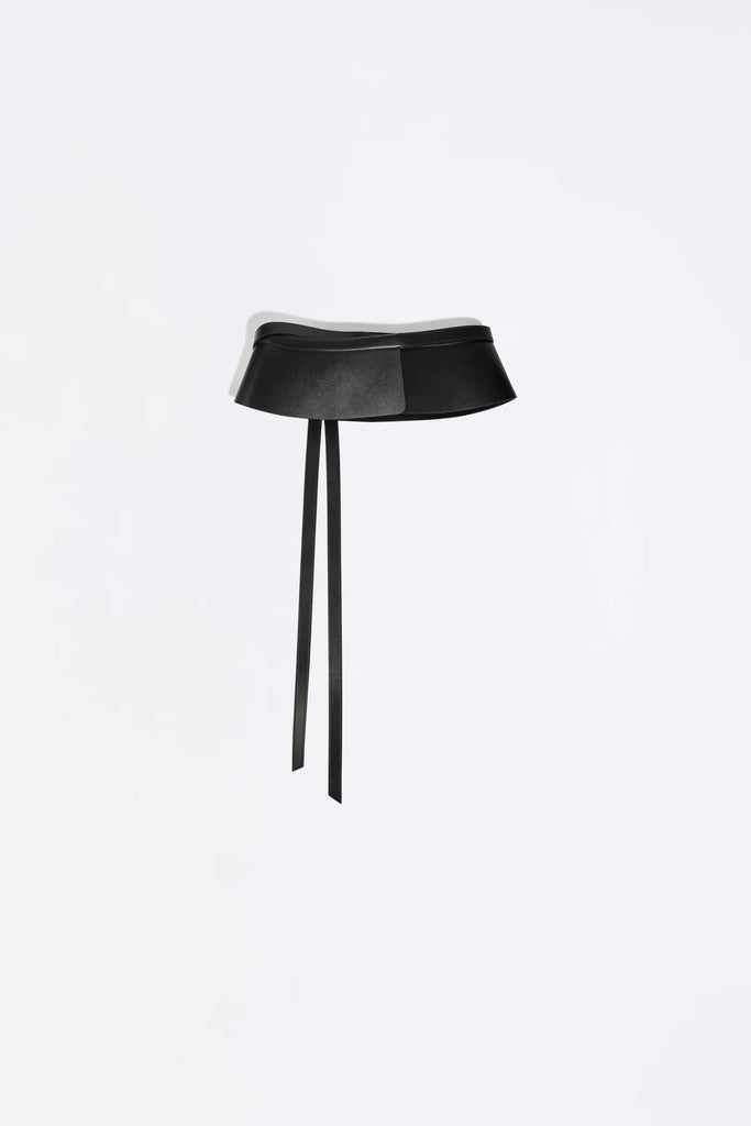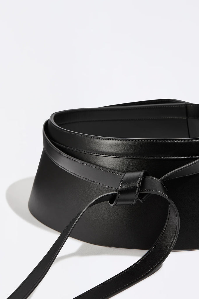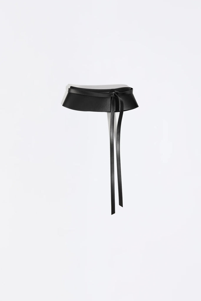 Vegan leather corset belt, knot fastening. H. 10 cm