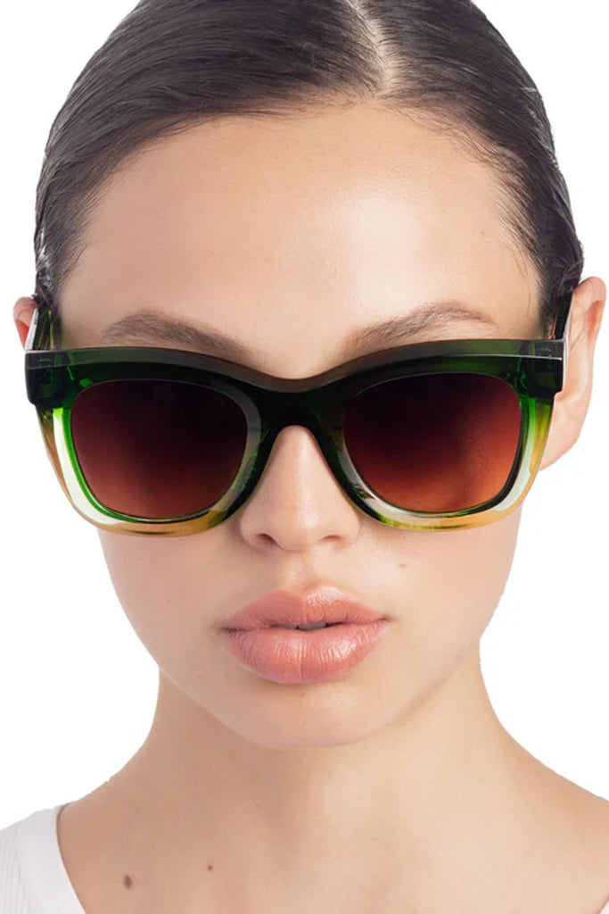 Discover the Juli sunglasses from Grand Azur’s debut, Summer 2023, collection. They are handcrafted and hand colored one by one in Italy. The die-cut seashell identifier in the wire core is the first of its kind.