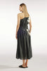 MIDI DRESS IN 100% PRINTED LINEN, ONE-SHOULDER, SLEEVELESS, RUCHED WAISTBAND, Flared SKIRT AT THE BOTTOM, ZIP ON THE SIDE, POCKETS INSERTED ALONG THE SIDES.