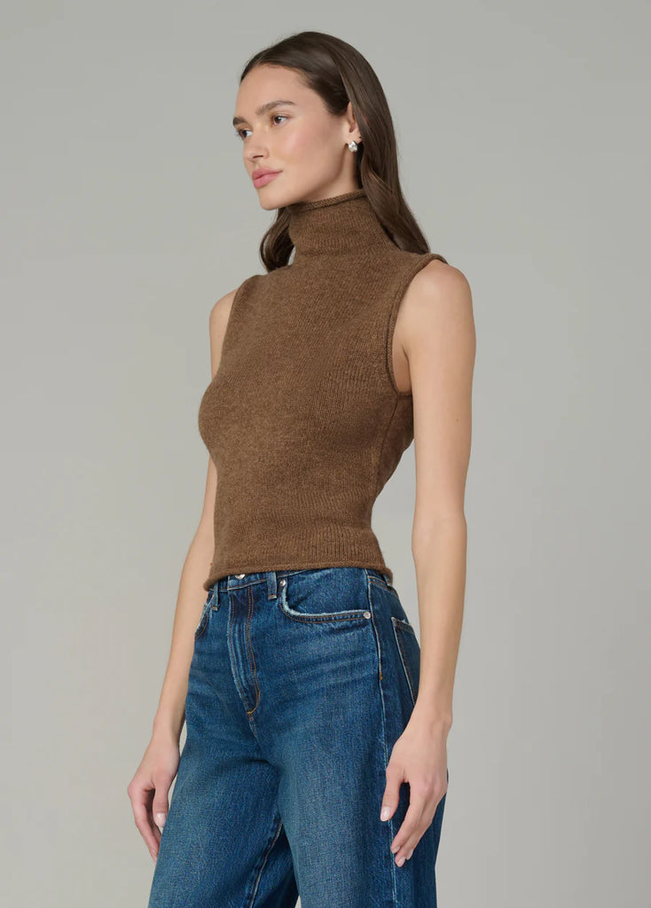 The perfect transition piece: a chic funnel neck, sleeveless sweater with an easy-fitting body in a luxe natural-fiber yarn.