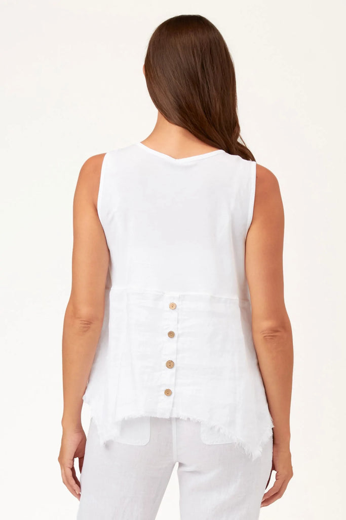 Sharkbite side panels, button up back and contrast cotton jersey shoulder panel are key component in the Tomaso Tank. Throw in rib front contrast and a v-neck and Tomaso can't help but be your new favorite.