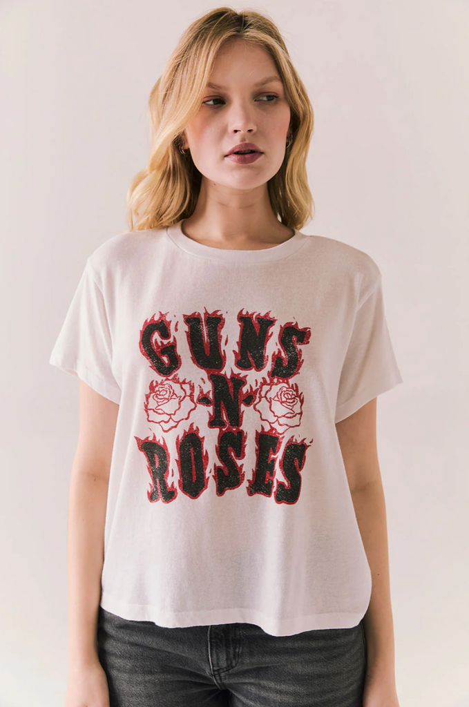 The Guns N’ Roses Flaming Roses Tee brings soft edge to your band tee lineup.