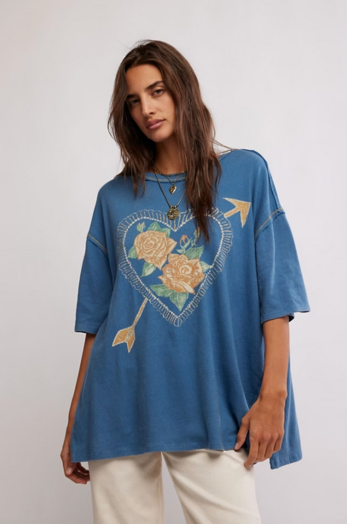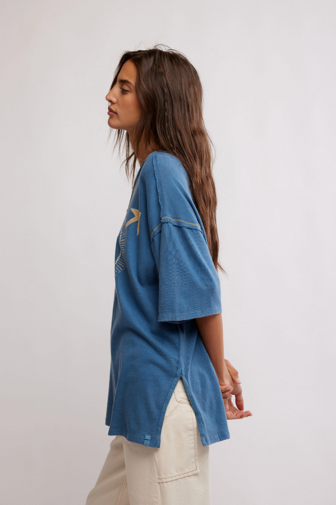 Effortlessly cool, this laidback tee from WE THE FREE collection features a soft cotton fabrication and slouchy, oversized fit with graphic detail and drop-shoulder sleeves.