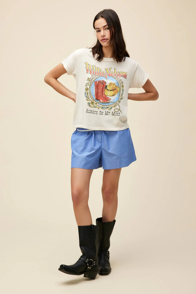 Yeehaw. Fit to represent Willie Nelson and his country roots is a hat and boots graphic accented in a paisley frame. Tributing Nelson’s Grammy Award-winning version of “Always On My Mind.”