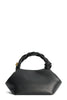 This Black Small GANNI Bou Bag is made from a blend of recycled leather and is designed in a hexagonal shape. The bag features a tone-on-tone metallic GANNI Butterfly logo, nine hand-braided strands with a braided knot and a metallic dice with a GANNI and Butterfly logo engraved. It comes with double compartments, an internal magnet closure, a flat card pocket inside and an adjustable and removable shoulder strap for crossbody wear.