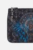 The Ground Control Small Canvas Clutch enthralls with a kaleidoscope of feathered layers as splashes of aquamarine and royal sapphires dance alongside ornate golden detailing. Adorning hand-embellished CAMILLA crystals, this luxury clutch plays host to a decadent piped trim, golden zip fastening that marries dainty tassel detailing and an interior compartment pocket for your evening essentials.