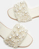 elevate the standard flat slide look with a wide strap encrusted with faux pearls in varying sizes for maximum shimmer.