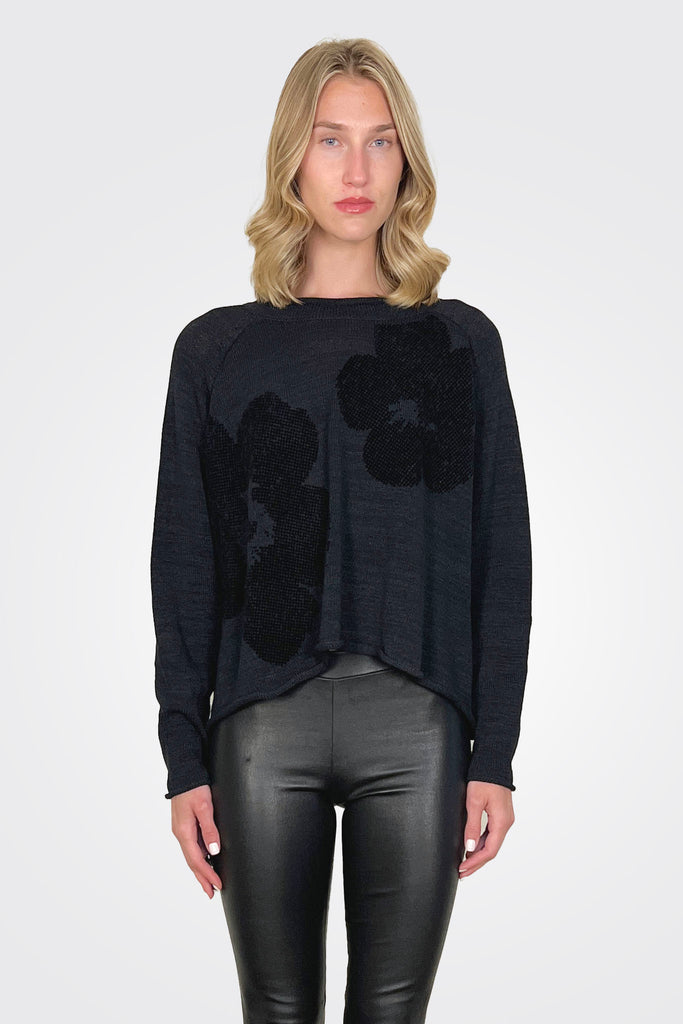 Flower Pullover - Black Black Flock