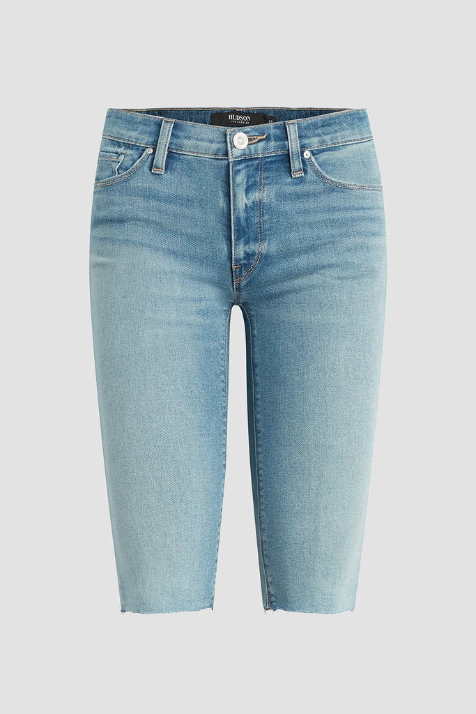 A warm-weather ace, our Amelia Mid-Rise Short features a slim Bermuda silhouette with a raw hem. Hitting just above the knee, it’s cut from premium stretch denim in the medium indigo Rockaway wash.
