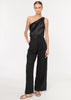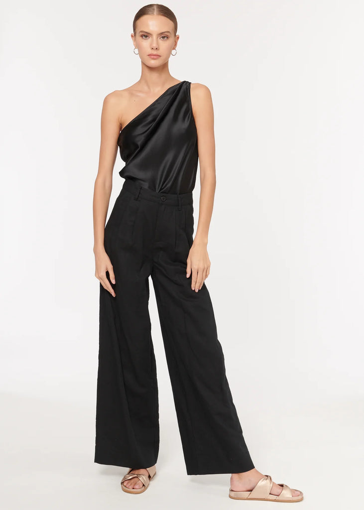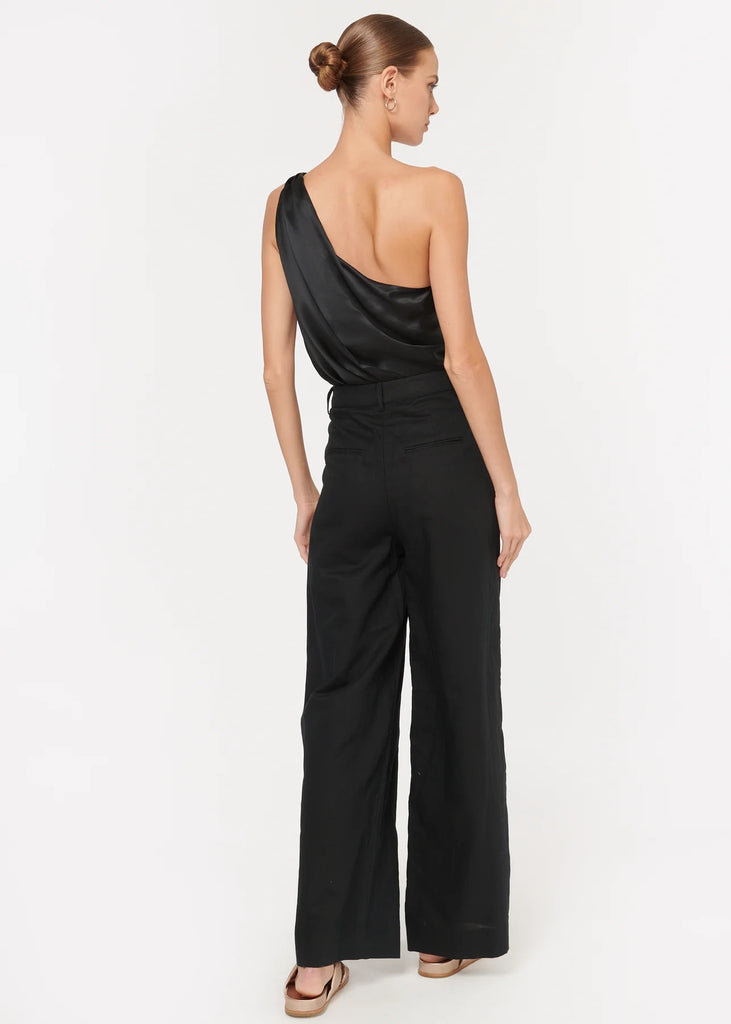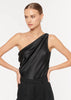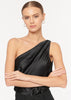 Constructed with silk stretch sandwash charmeuse, the Darby Bodysuit is a comfortable and effortless fit. The asymmetrical draped neckline adds a sophisticated touch to a one-shoulder style. This year-round classic is available in Black, complimenting all your wardrobe needs. The Darby will be your wardrobe builder of the season.