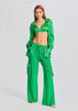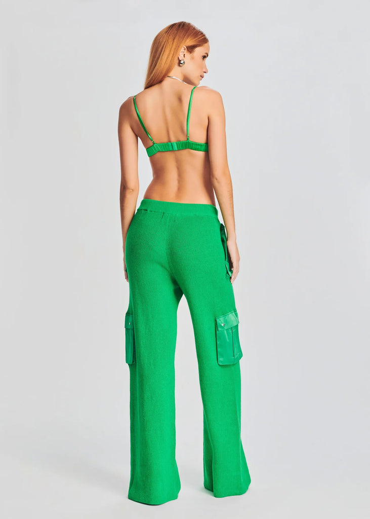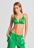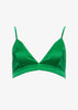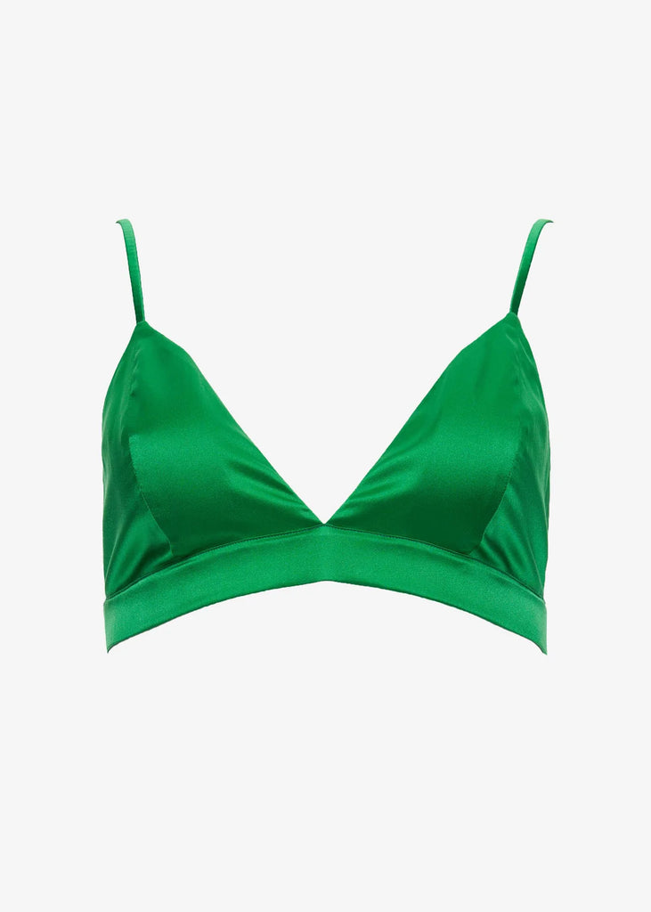Silk spaghetti strap bralette with triangle cups. S-hook closure on back. Shown here in Kelly Green.