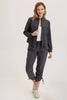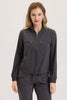 Ooooohhh! Look at this clean cut bomber. No extra fluff here, just easy and cool like a breeze through the trees. Quinn is the quintessential update to your bomber game! Ruched hem and cuffs, plus a smooth draped fabric equals putting one of these in your cart.