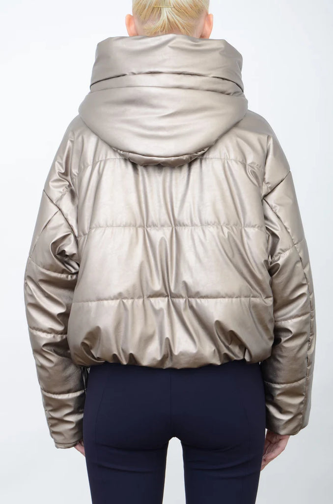 This statement making puffer jacket infuses fashion and function - what's not to love? Crafted from soft yet durable vegan leather with a radiant metallic finish, it features a detachable hood allowing you to switch up the look depending on your mood or the weather. It's extremely cozy and comfortable - you'll be reaching for it all winter long for years to come!