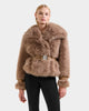 Chloe Faux Fur Removable Down Hood Dickie - Camel