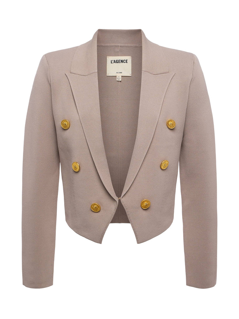 Elio Cropped Knit Blazer - Pale Khaki / Gold