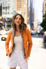 Made of 100% lambskin leather with the same polished seams and contrast zips as the Sofia, this jacket is vegetable tanned and ethically produced for the socially conscious!