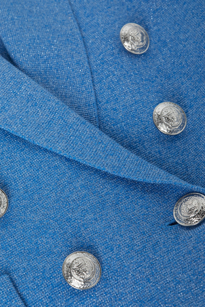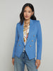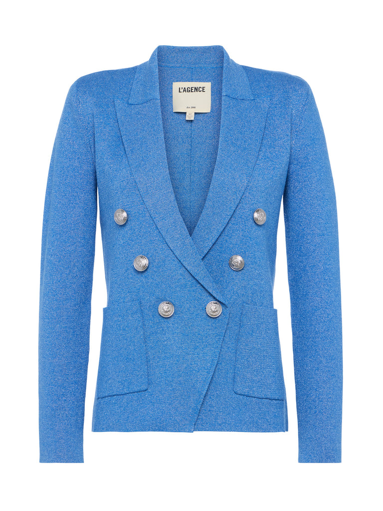 super-sculpted Kenzie blazer is a L’AGENCE classic and a bestseller season after season, featuring a tailored slim fit with mechanical stretch. Now in a shimmering blue knit.