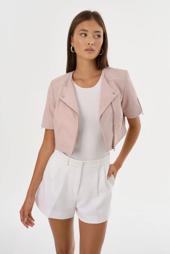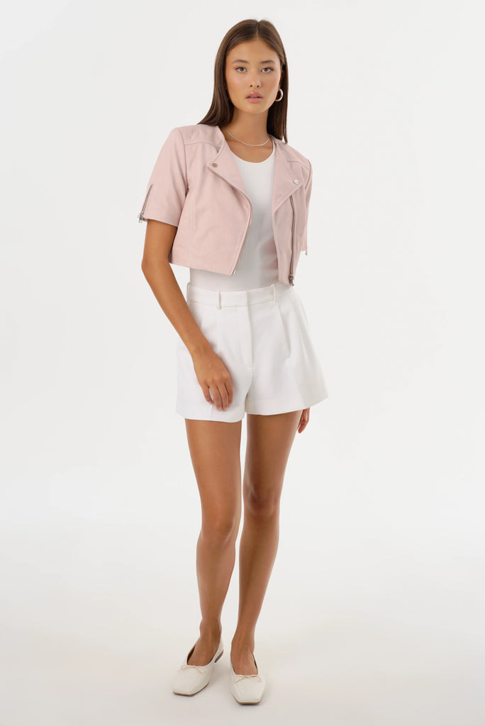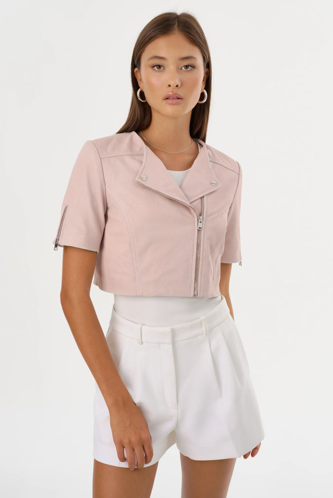 Unexpected in all the right ways, the Kirsi cropped biker jacket is an attractive choice for balmy evenings. Featuring classic biker elements from the asymmetrical closure to the snap lapels, this beauty hits right at the hips to define your silhouette. You'll fall for its soft-to-the-touch lamb leather body. Lightweight and breathable, this top piece makes a flawless day to night transition.
