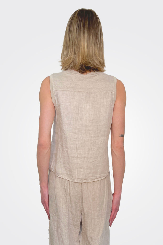 Linen Jersey Comfort Fit Flared Vest - Sand