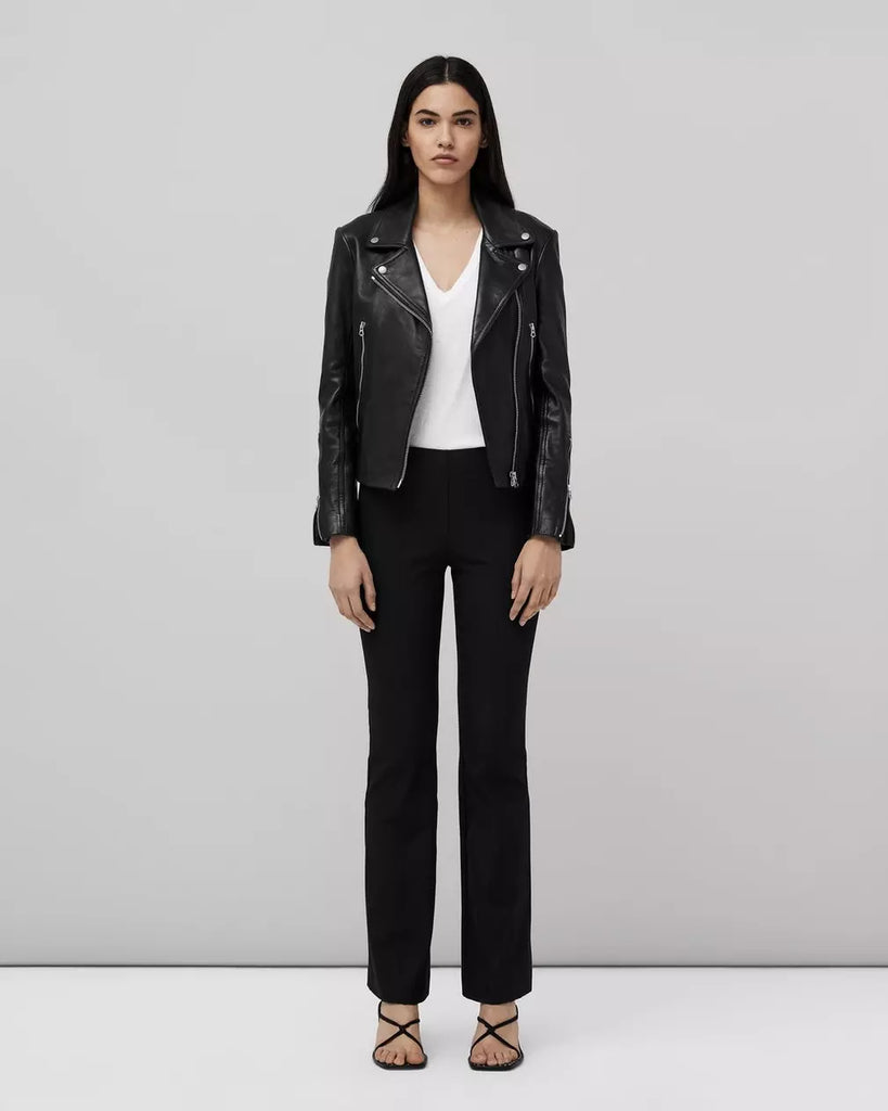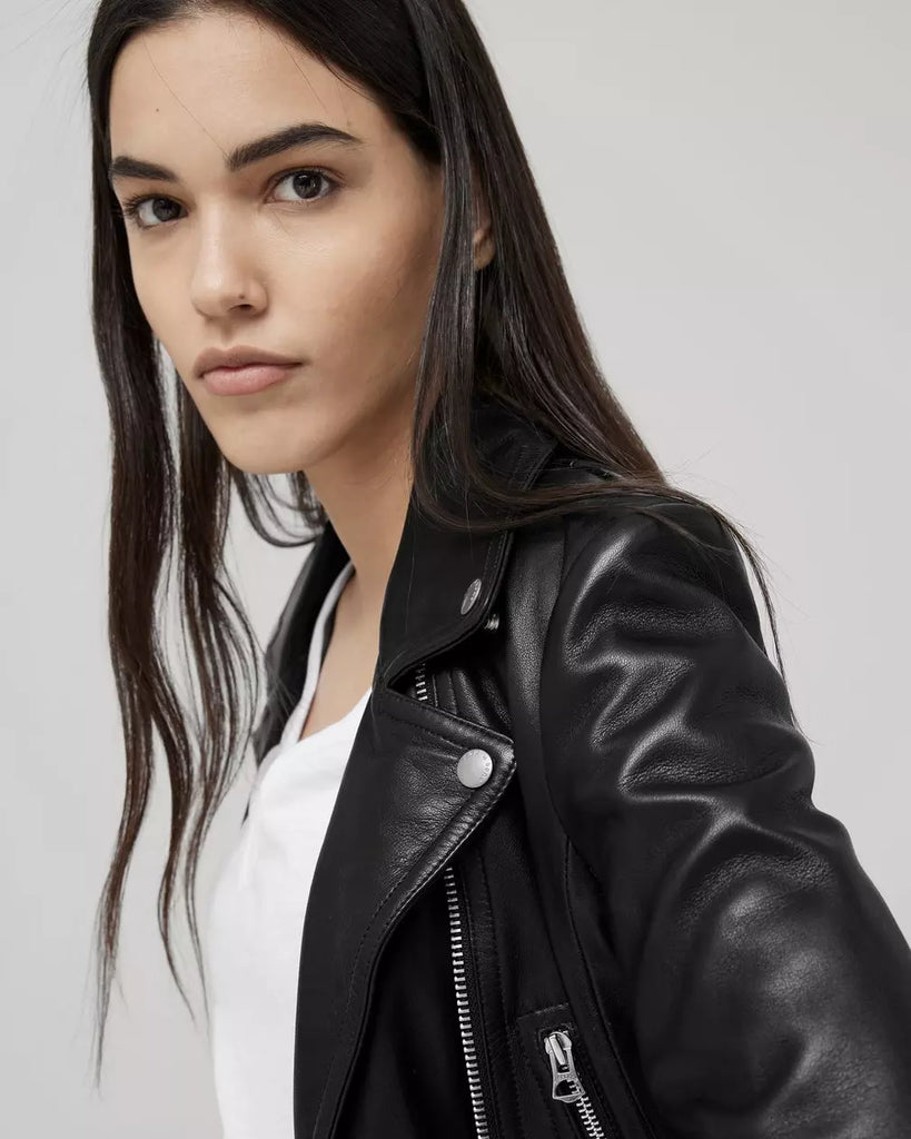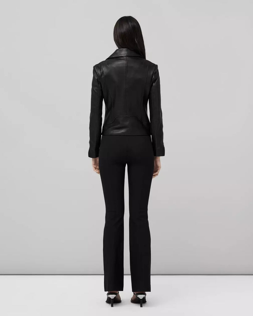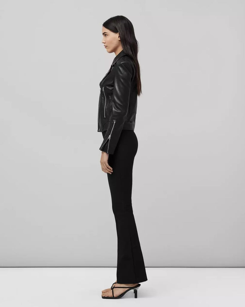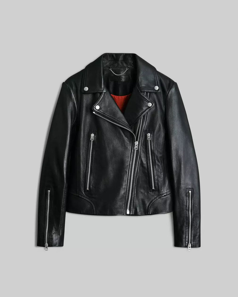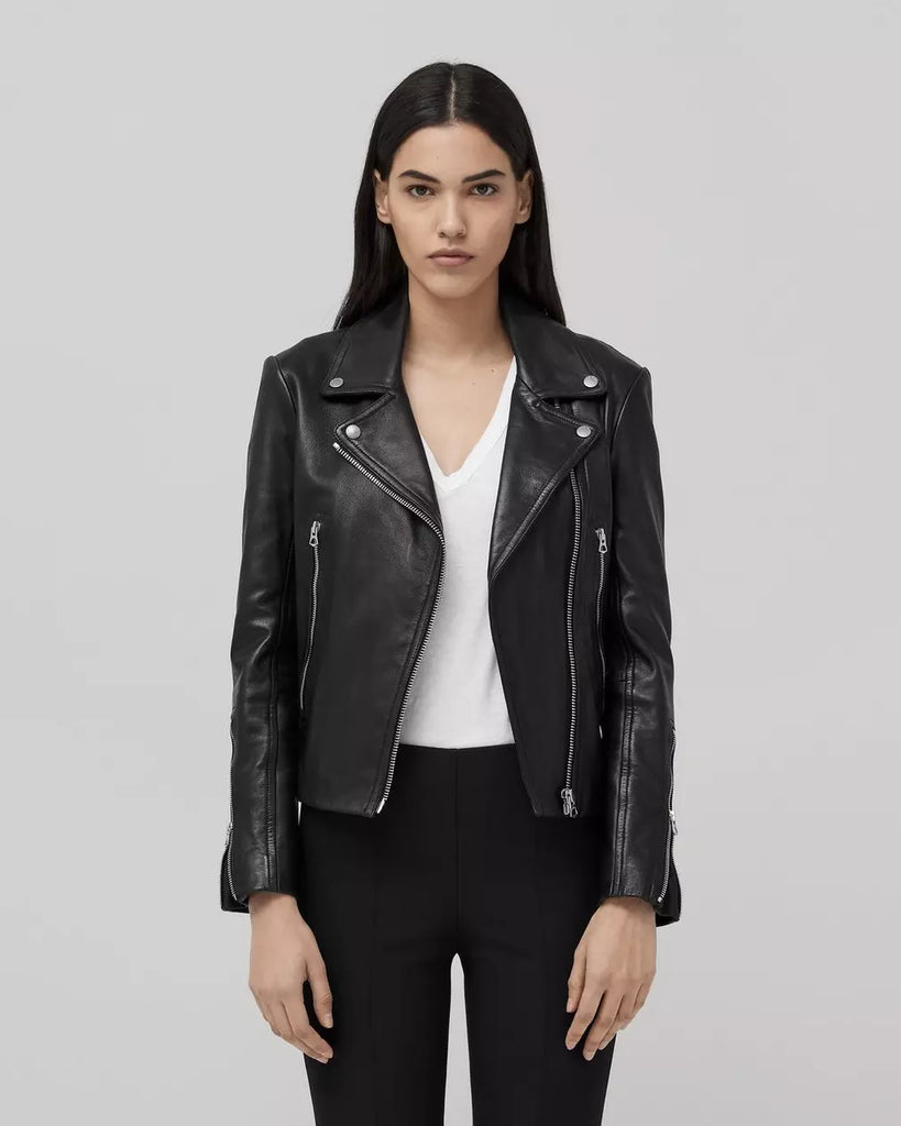 The perfect motorcycle jacket, crafted from hand waxed lamb leather with signature zipper and snap details.