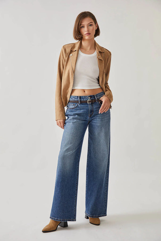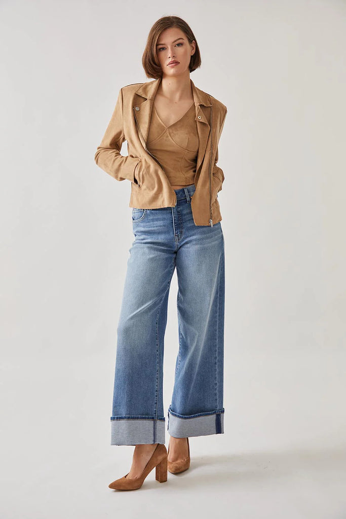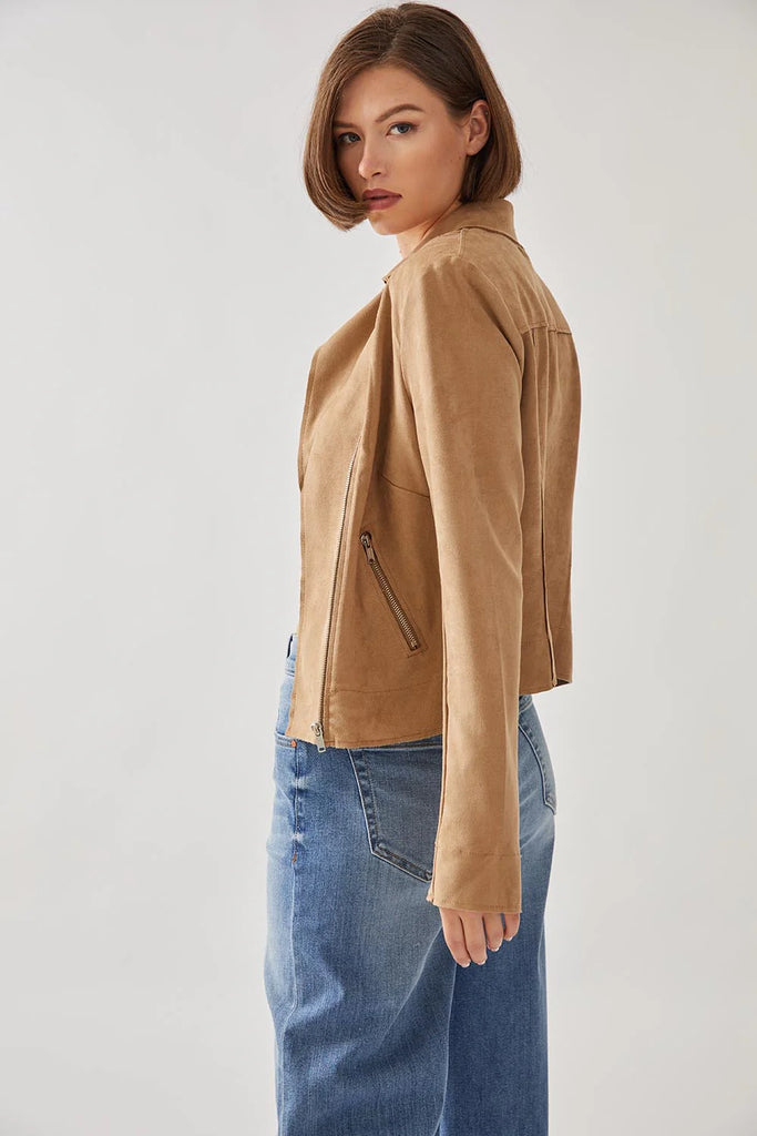 A closet staple, Maeve moto jacket made in soft faux suede. Great layering piece that adds a bit of style and edge to any outfit. Throw over with a white tank and tee and your ready for any occasion out and about your day.