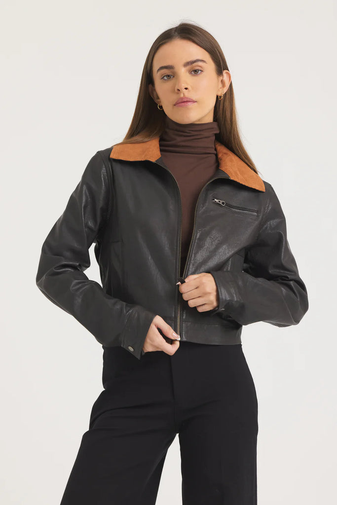 Be the main character in an effortless leather jacket from Jakett. Crafted for the woman who exudes comfort and confidence as she shapes her legacy of style.
