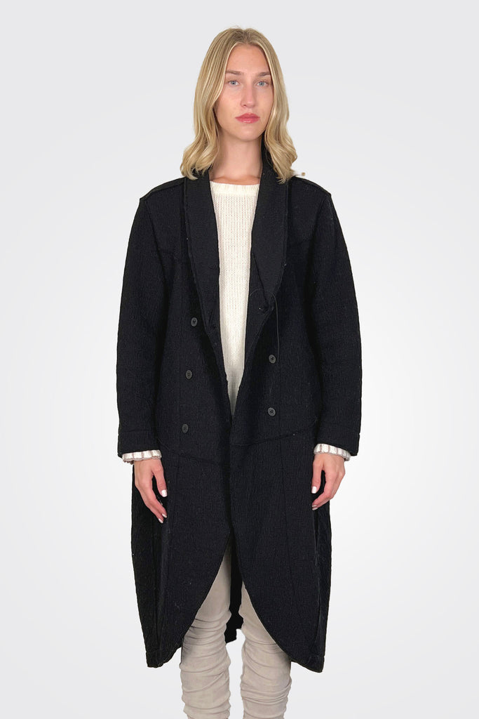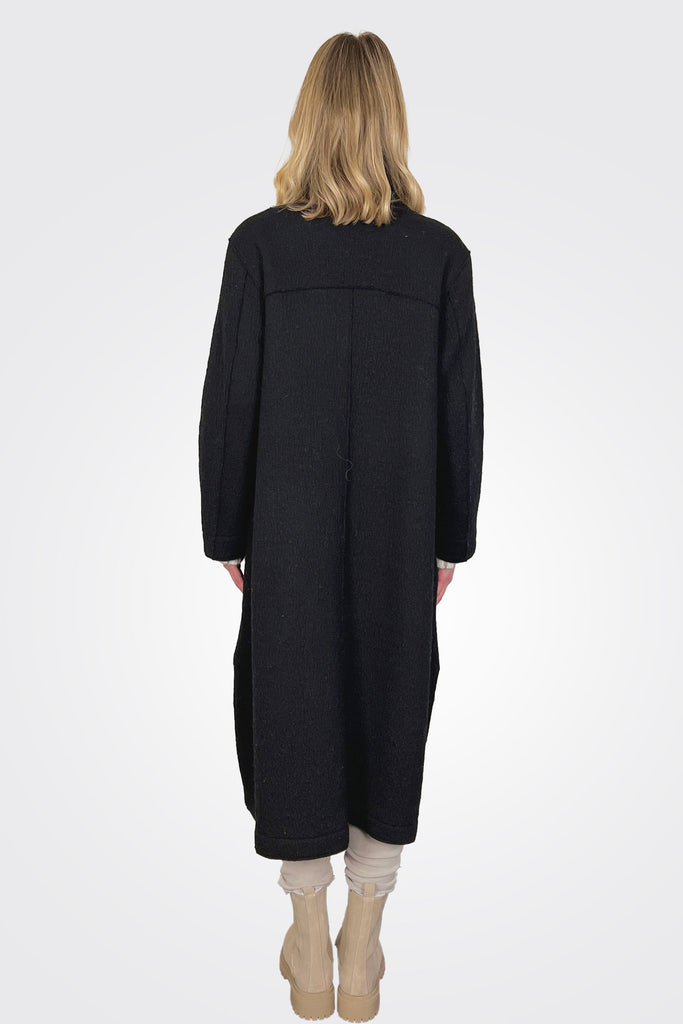 Oversized Midi Boiled Wool Knit Coat - Black
