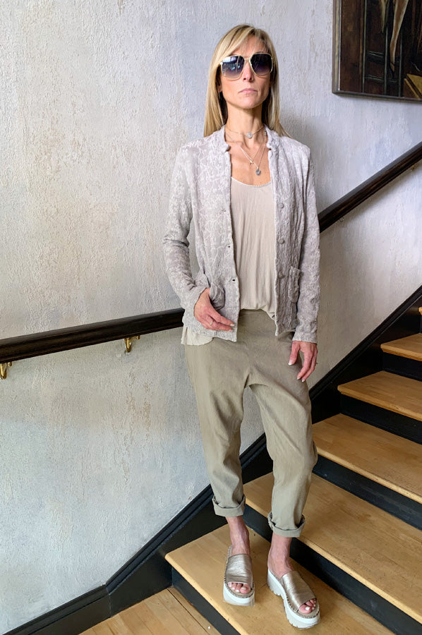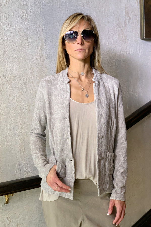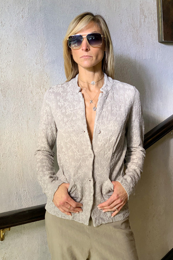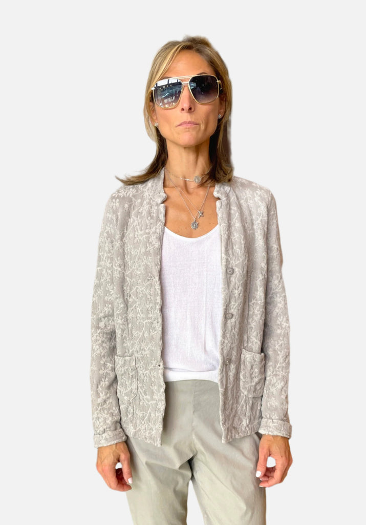 Floral Cotton Linen Jacquard Knitted Jacket - Grey