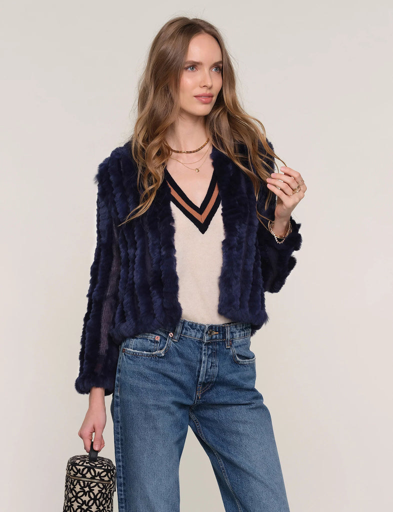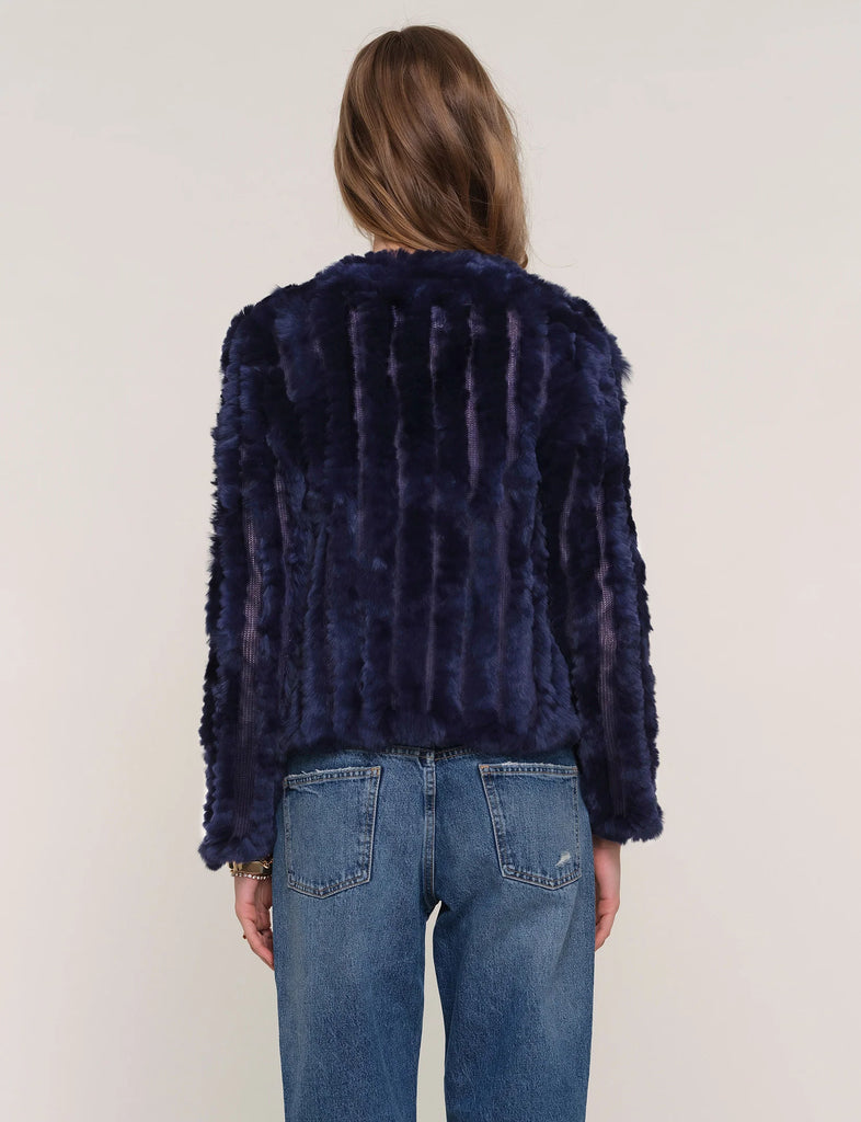 Soft rex rabbit fur Relaxed fit Jumbo hook and eye closure Knitted fur construction
