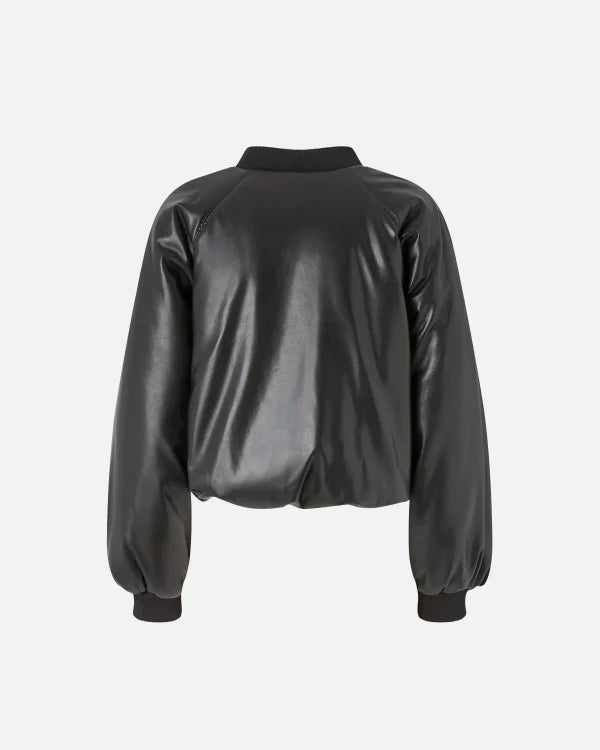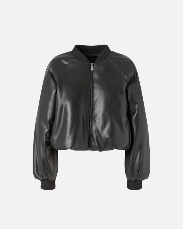 Short Leather-Effect Bomber Jacket - Black