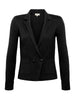A double-breasted blazer in black premium knit. Tapered at the waist, supple, feminine style is balanced by smart tailored touches like strong shoulders, sleek lapels and patch pockets. Embossed-dome buttons add a luxe finish.