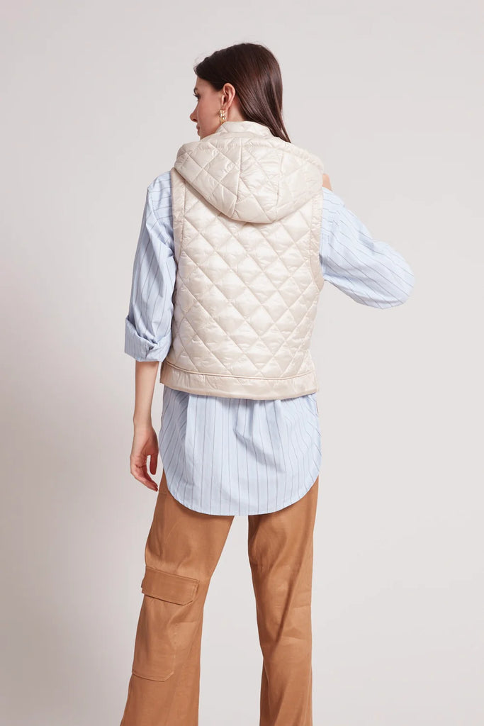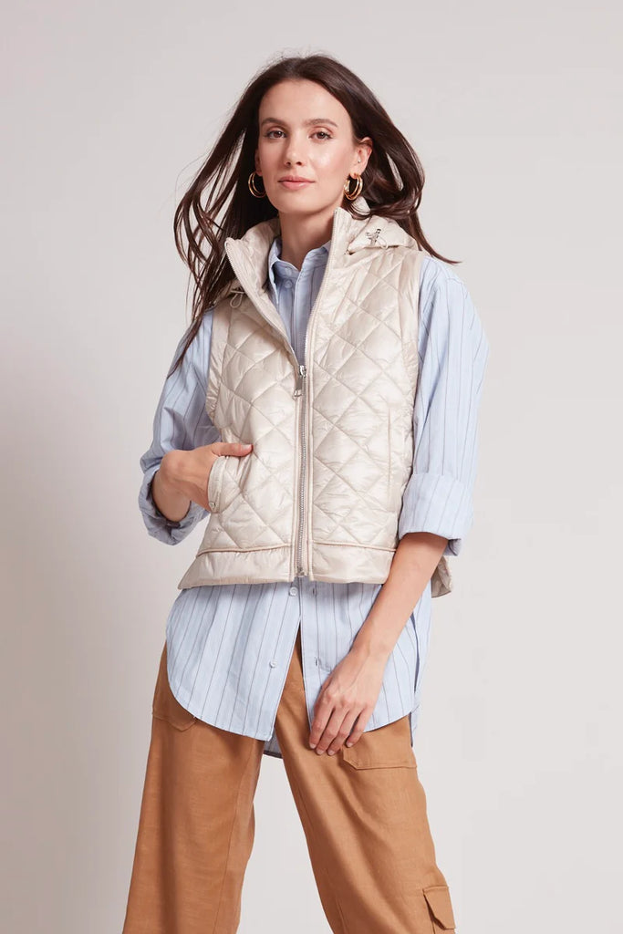 Talia Quilted Gilet w/ Removable Hood - Champagne