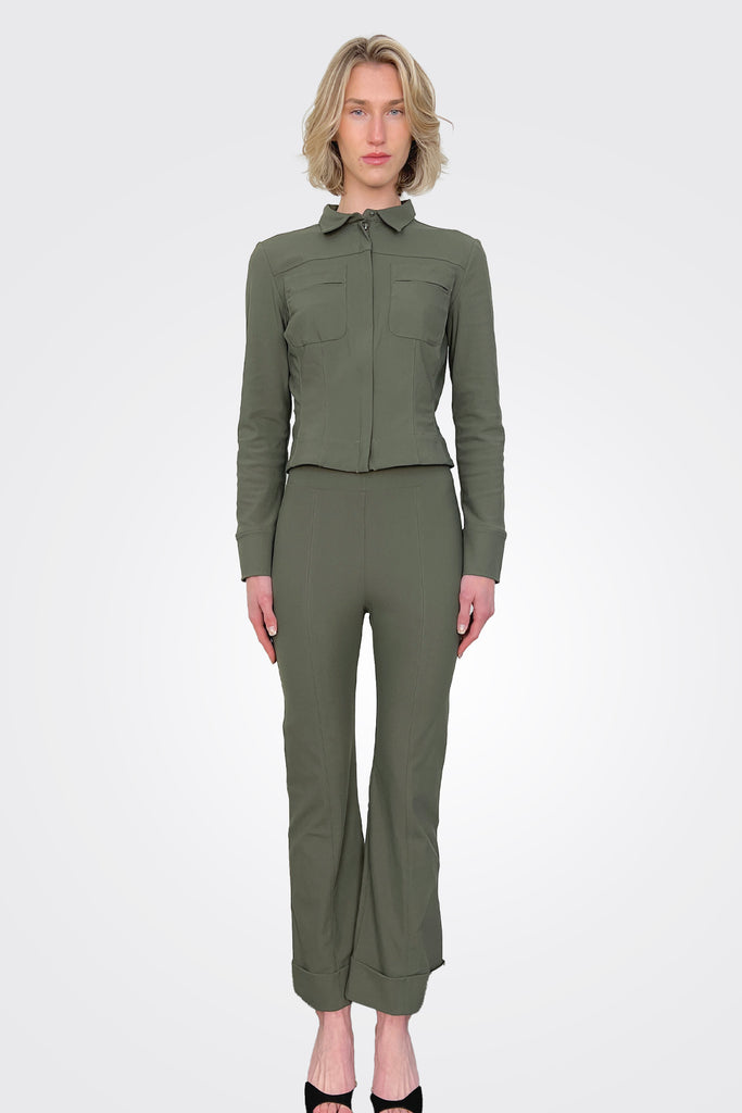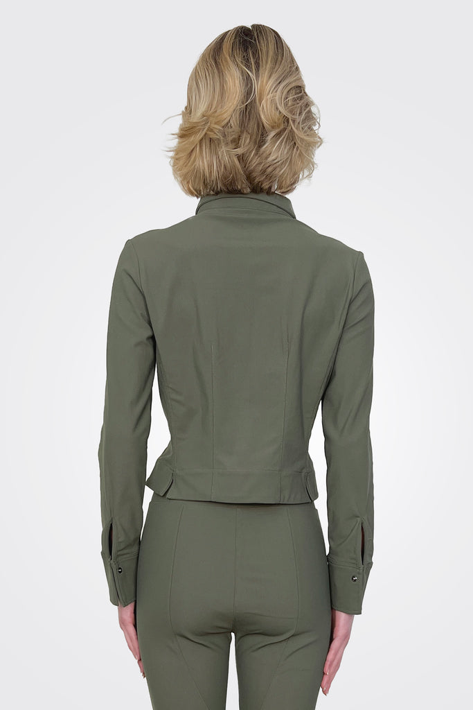 Get the ultimate comfort and style with this wardrobe staple shirt. It's made with stretchy, breathable fabric, has a reversible zipper, and convenient patch pockets. It flatters your body while combining style and practicality.