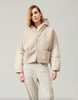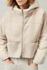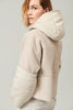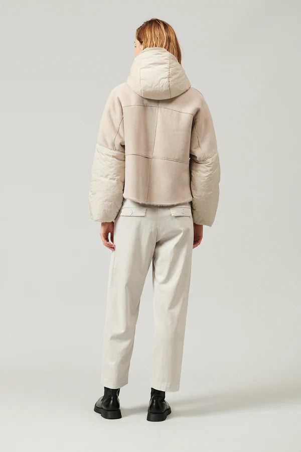hort sheepskin jacket with padded nylon hood and sleeves. Zip opening.