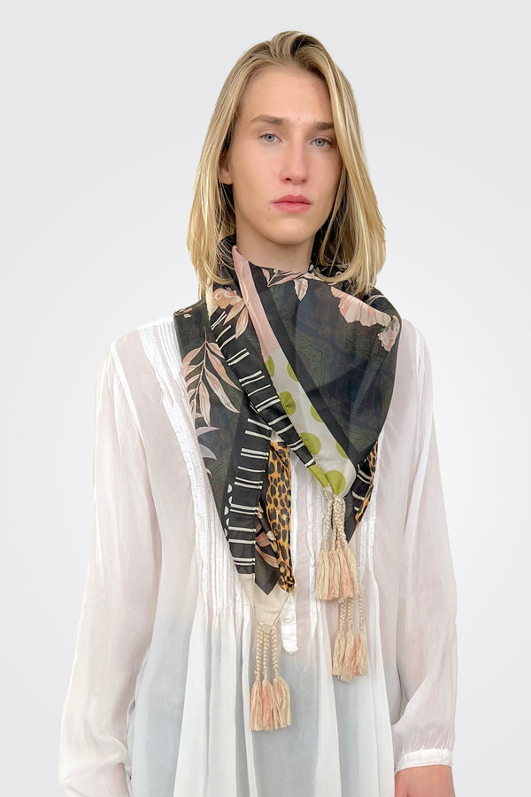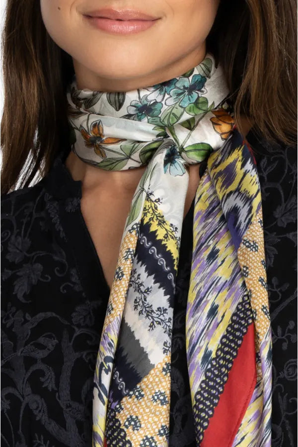 • Scarves & Wraps — Silk scarves, mixed fabrics, exotic prints that can double as headwraps, shawls, or statement accessories.
