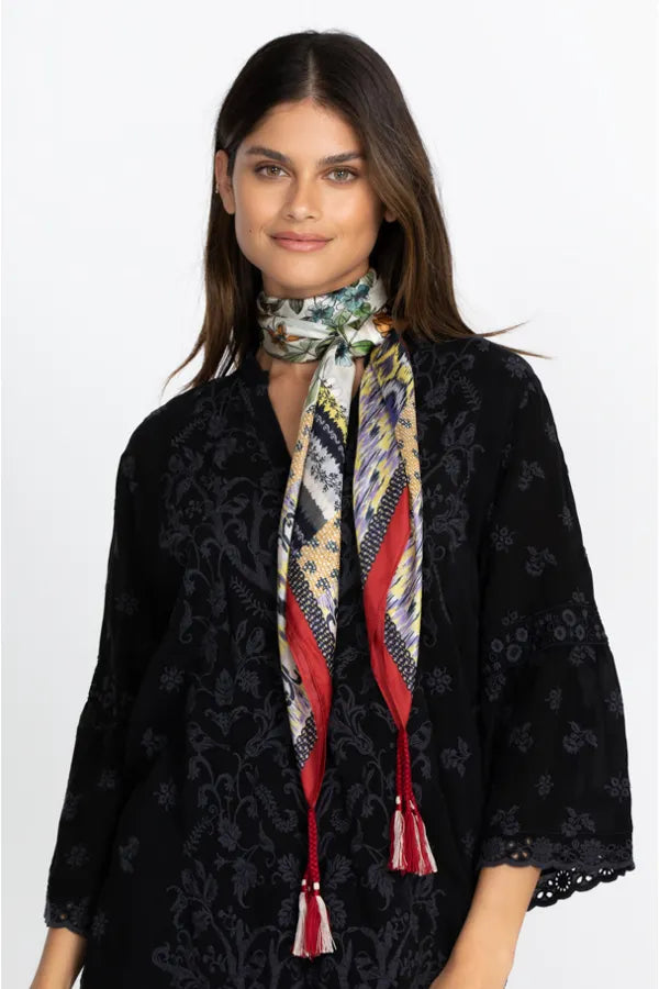 Johnny Was is built on the foundation of bold creativity—rich prints, embroidered details, patchwork motifs, and fabric that feels luxurious. The label combines resort ease with bohemian soul: maxi dresses that sway in the breeze, scarves you wrap or accent, tops with dramatic sleeves, and accessories that complete the look. These aren’t just clothes—they’re wearable art made with quality in every stitch.