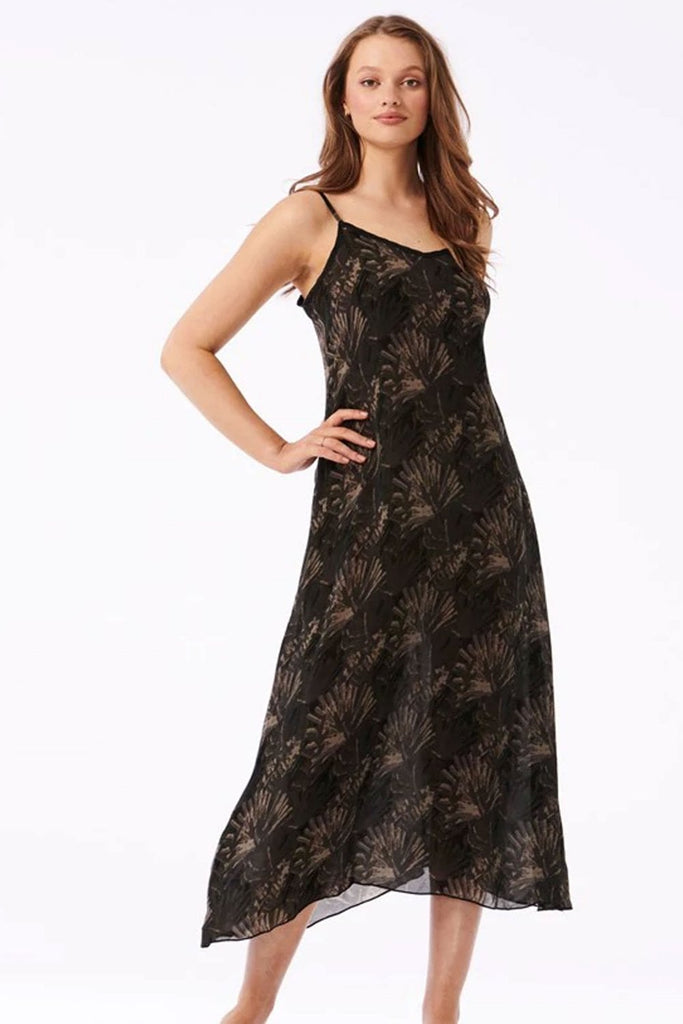 One Season Antoinette Slip Dress Palm Springs Multicoloured Print Khaki Print