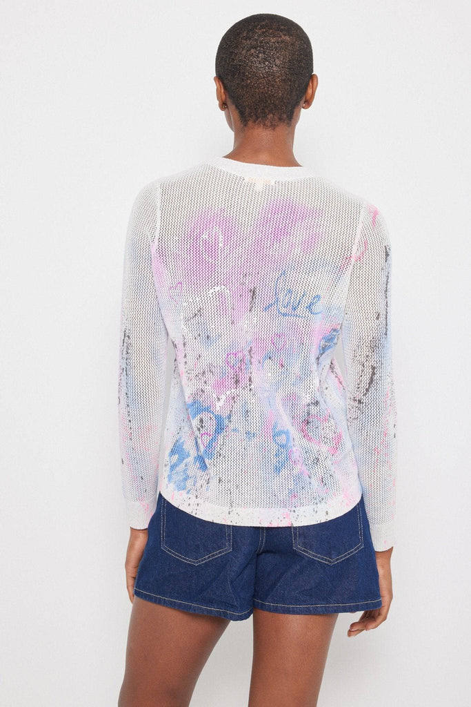 The Spring Love lightweight Cotton open stitch sweater features our message of love with an exclusive LISA TODD artisan print.