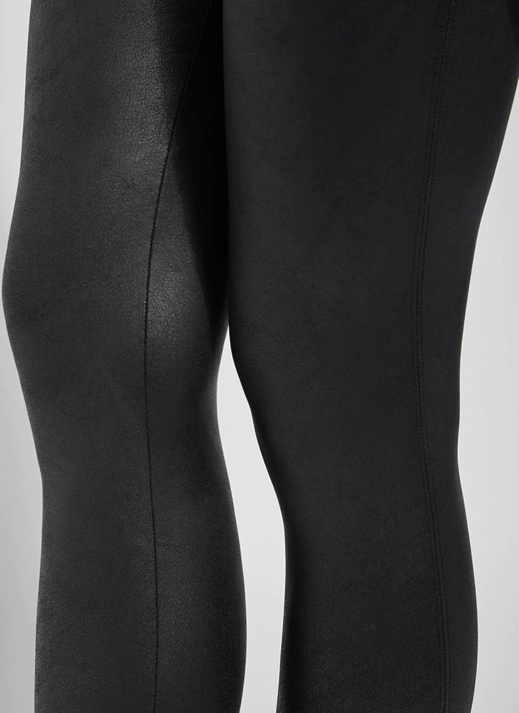 Offering pleasant 4-way stretch and a waist that’s 1.5 inches higher than Lyssé’s standard, the Matilda Foil Legging is crafted from a lightweight, yet contemporary Foiled Faux Leather. Crafted using a foil lamination technique on matte faux leather, these high-waisted faux leather leggings offer a concealed patented waistband and full-length, season-less style. Light, comfortable and machine washable, these high-waisted leggings partner beautifully with a blouse and mules.