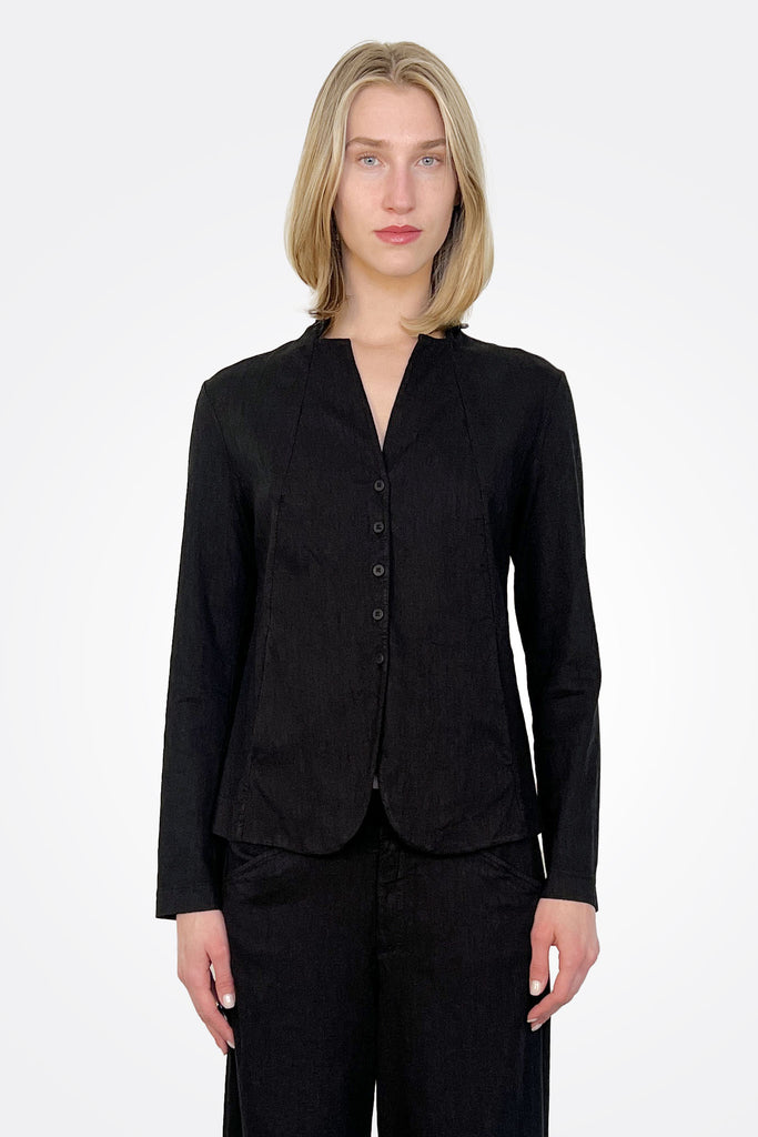 Slim-fit, unlined stretch linen blend jacket with a mandarin collar. Pocket openings on diagonal cuts. Fastened with five buttons. Garment dyed. | 1014.CFDTRZF151-10
