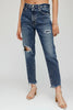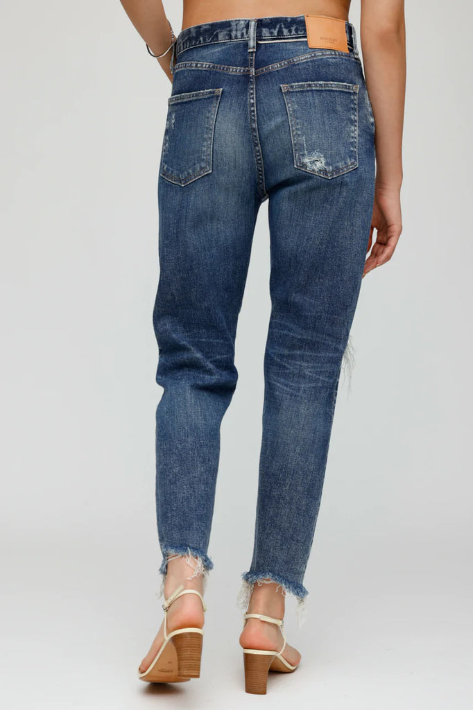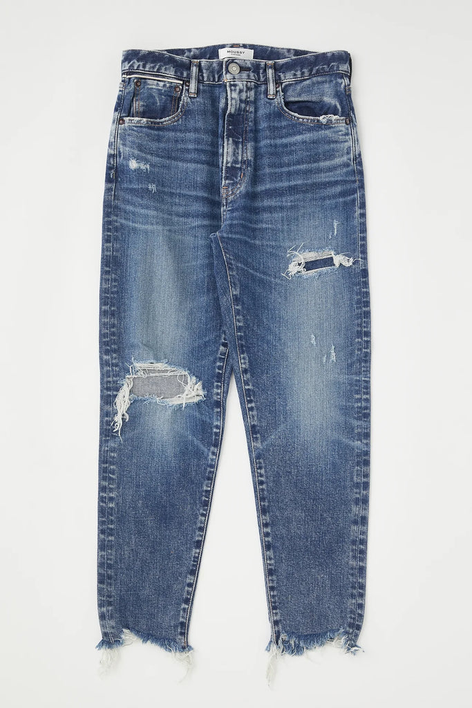 Denim has an uneven frayed hem