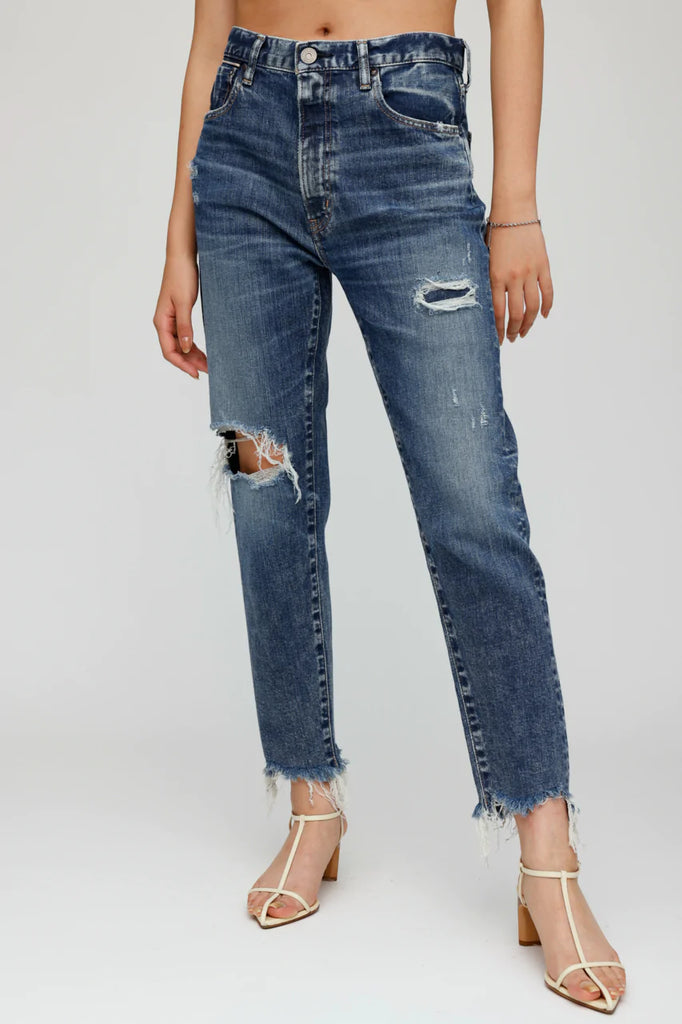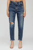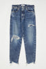 Relaxed jeans with distressing and ripped knee