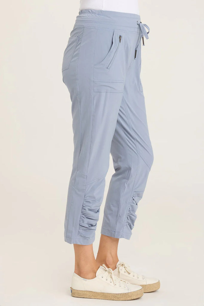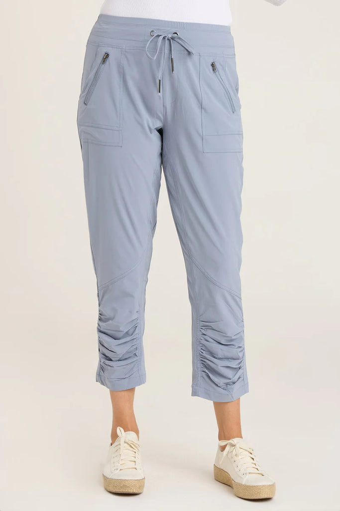A Jetter spin off; this active legging features a drawstring waist, front pockets with zipper details, our classic ruched leg panels, back pockets and enough sass to keep you going all day!