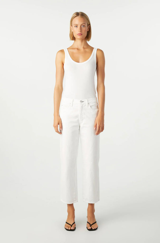 This cropped, wide, straight leg is our easiest fit yet. With a mid rise, this pair is meant to sit low on the hips for a relaxed look. Thoughtful distressing throughout. Zip fly.