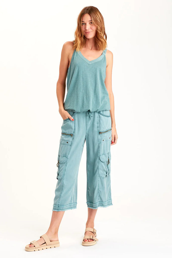 Easy fit gauchos are our cup of tea, and this one is no different. The Birk Gaucho has halter snap hooks at the cargo pockets, hardware detail on the front pockets and a drawstring waistband.
