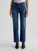 Brinley is our new mid-rise straight jean, done here in a dark blue wash with marigold contrast stitching and a 15-year AG-ed™ finish. Fading, whiskering, and hits of distressing near the hems. These five-pocket women's jeans sit right at the natural waist and fall to the perfect straight-leg silhouette for year-round styling. This pair comes in 11 oz. Lead Denim with comfort stretch.