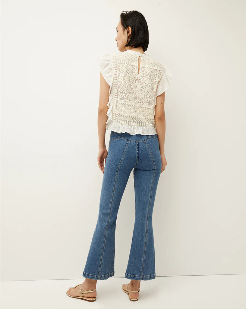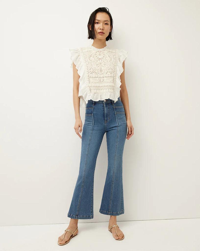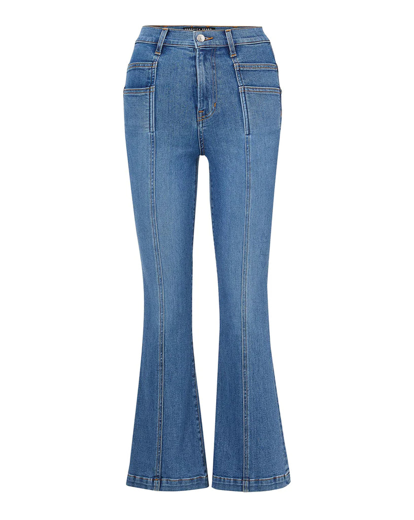 Meet the Carson, our high-rise, ankle-flare jeans. In premium Italian denim and made in LA, this faded wash, Seventies throwback style is fitted through the hips and thighs and features double patch pockets, front seams and a sun yoke in the back. Wear with sweaters, tees, blouses—you name it.