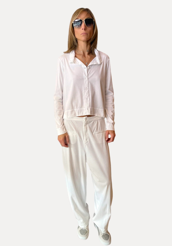 Comfort Fit Stretch Cotton Jersey Trousers - White